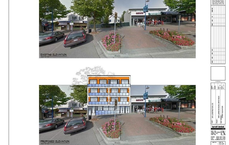 Amazing opportunity to buy and build a small scale mixed use boutique building project in the heart of downtown White Rock. This could be a retirement project for someone to live in a penthouse and rent out a fully stratified building which could easily be sold individually in the future. Or for someone transitioning from single family construction to multifamily. Or maybe a great CMHC rental project for experienced players. 3rd reading done for a 4 story mixed use boutique building - 1 commercial, 8 two bed condos and 2 three bed penthouses all with ocean views. Buildable area approx. 15,500 sq.ft. Zoned CR-2. BC Assessment as is for just the raw land is $2,752,300!